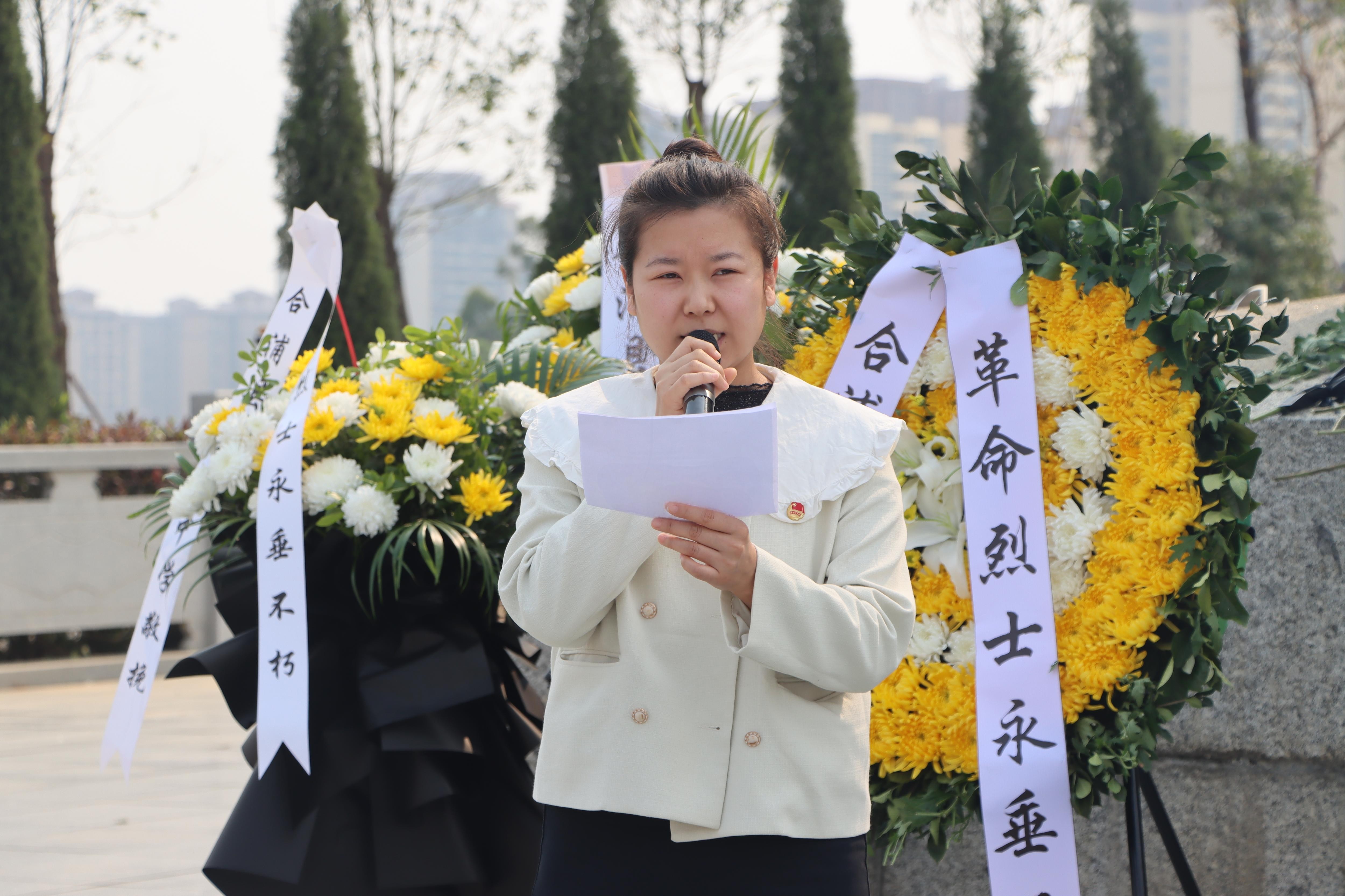 杨美琪副书记回顾了革命先烈的英勇事迹,强调铭记历史,缅怀先烈的重要性。她表示,红色基因是历史的烙印,更是奋进的明灯,合浦的红色印记是我们的宝贵财富,我们应该以红色教育培根铸魂,借主题教育让红色文化“活”起来,在新时代新征程书写崭新篇章。