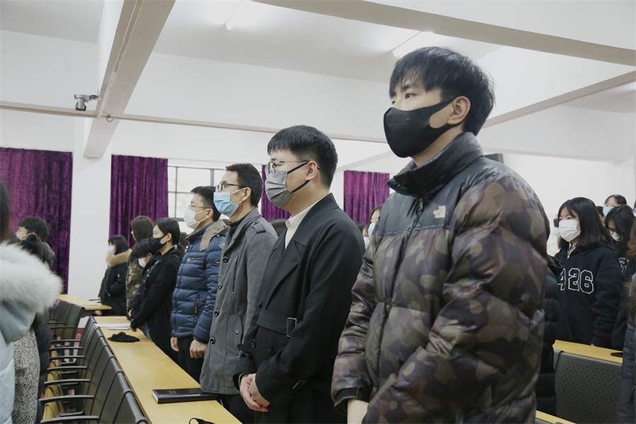 当天上午,伦理楼107现场庄严肃穆,10点整,江泽民同志追悼大会开始,全体人员向江泽民同志默哀3分钟,现场师生神情凝重、肃立默哀,深切悼念江泽民同志,寄托无限哀思,表达了对江泽民同志的崇高敬意和深切缅怀。默哀毕,全场高唱国歌后,认真聆听了习近平总书记所作的悼词,收听收看过程中,全体参会人员全程肃立,共同缅怀江泽民同志的光辉业绩、杰出理论贡献、优秀品格和高尚风范。