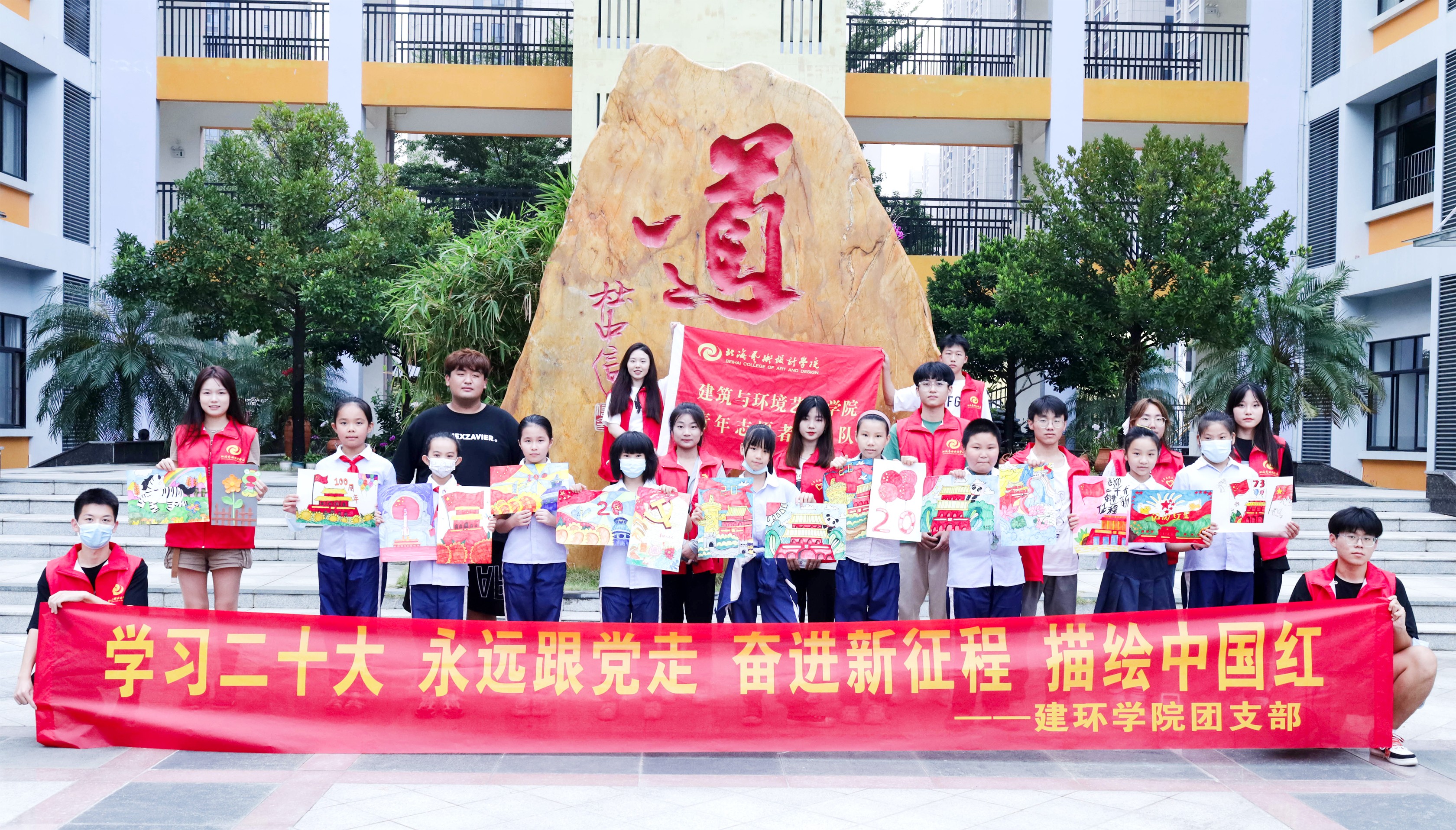 学习二十大,奋进新征程,培育祖国栋梁,深入了解二十大。2022年10月28日,建筑与环境艺术学院组织8名志愿者来到北海艺术设计学院附属学校开展支教活动。