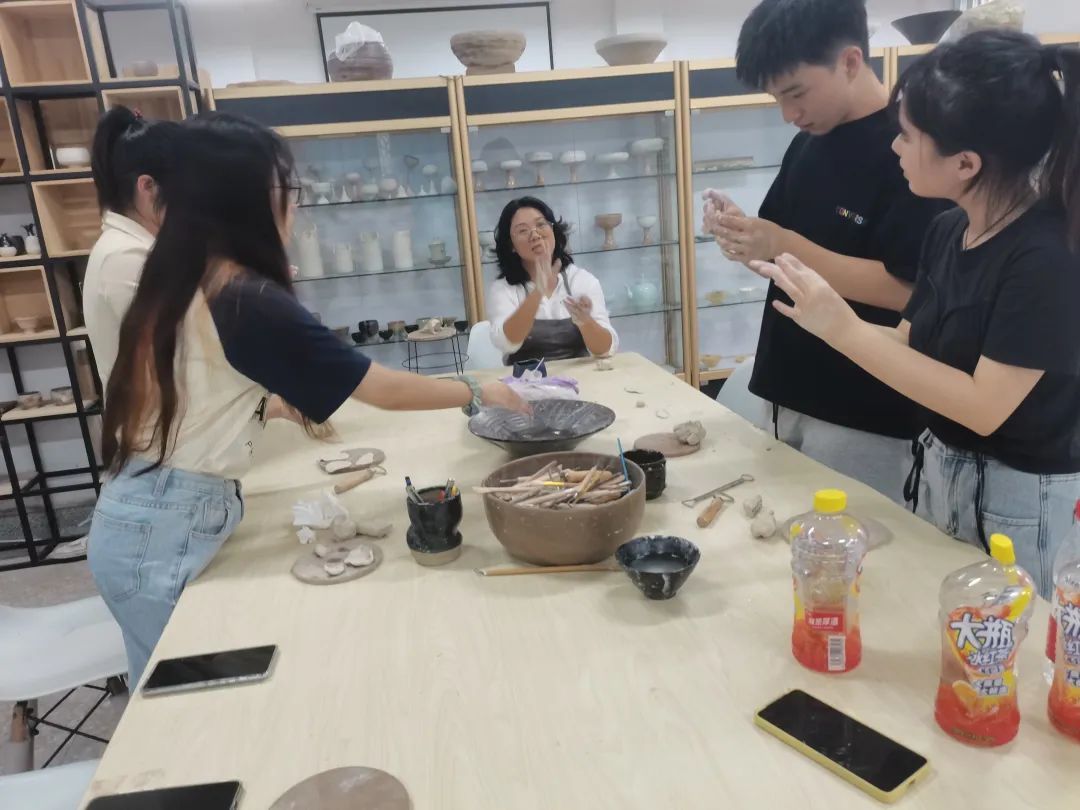 (团队师生在产品陶瓷工作室学习瓷花技艺)