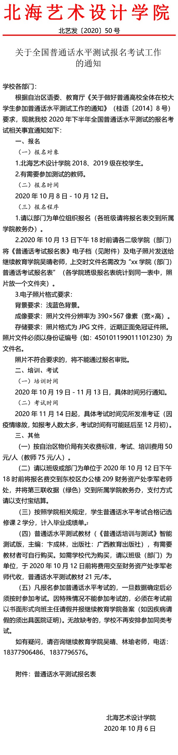 关于2020年下半年全国普通话水平测试报名考试工作的通知