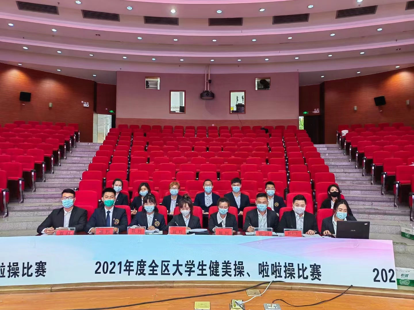 全区大学生健美操、啦啦操比赛是区内高水平健美操、啦啦操赛事之一,因受疫情影响,此次比赛为线上举行,评审团现场观看各个队伍视频并打分,赛事全程通过线上直播方式放送。