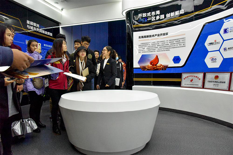 与此同时,由双方首次合作并精心筹备的“北海高新区银河产业城杯”广西创新设计大赛也正式宣布启动,拉开了我院与北海高新区政校企全面合作的序幕。活动开始前,领导嘉宾与我院的学生一同参观了银河产业城服务中心的沙盘,并工作人员的解说下,了解关于银河产业城的规划和理念。
