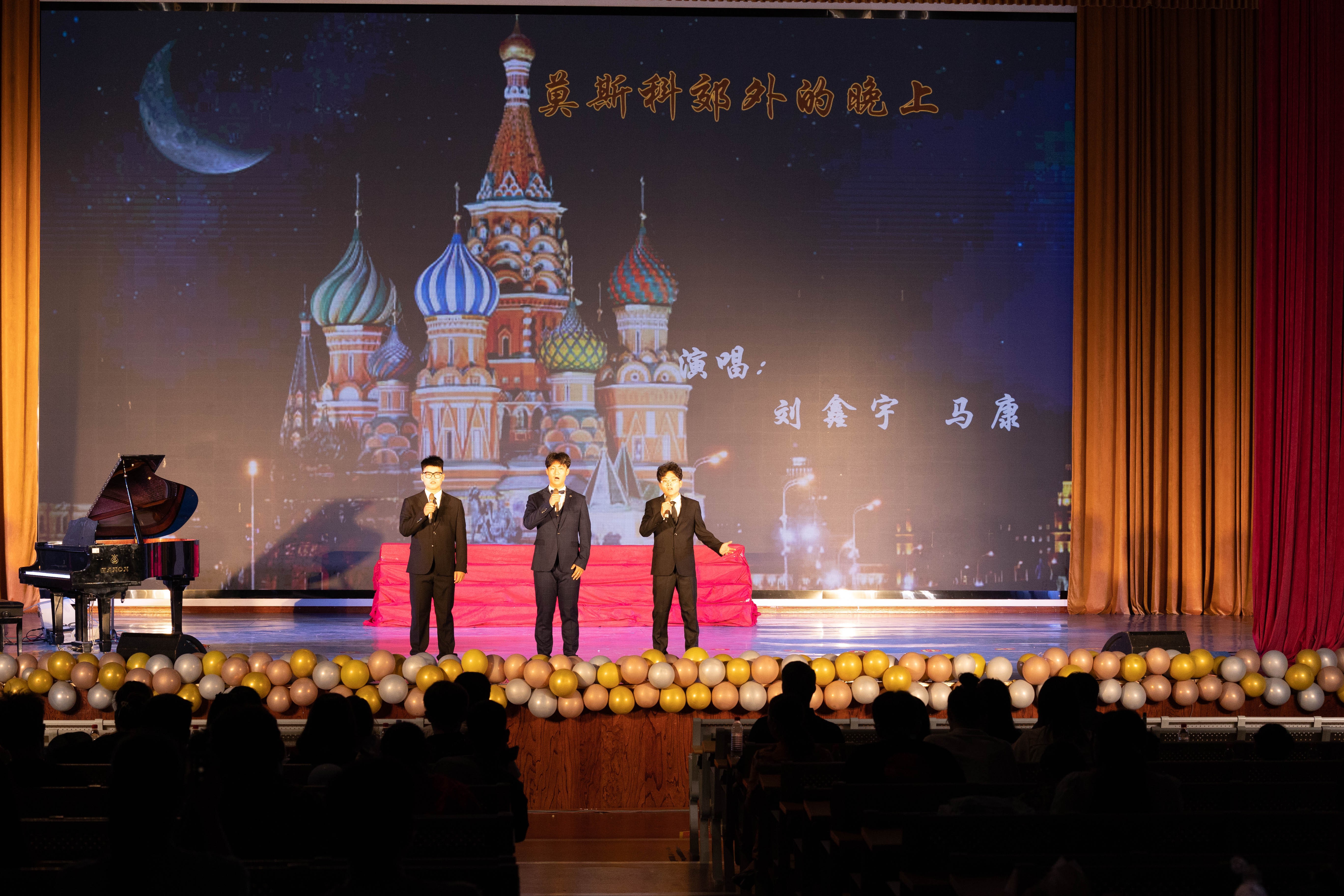 《莫斯科郊外的晚上》《喀秋莎》两首经典老歌,富有苏俄风情、内蕴优美旋律,不仅体现了我校学生扎根祖国,放眼世界的学术视野,也表达了师生对赓续中俄友谊的美好祝愿。