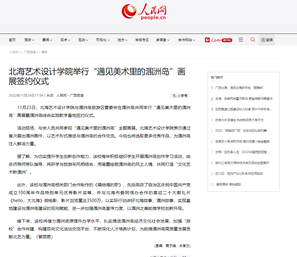 人民网:北海艺术设计学院举行“遇见美术里的涠洲岛”画展签约仪式