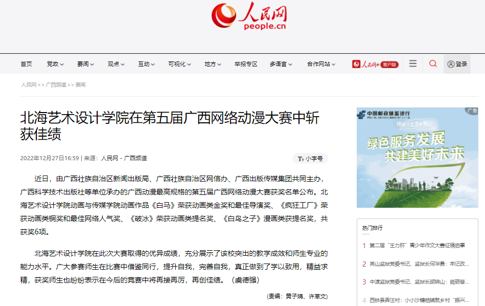 人民网:北海艺术设计学院在第五届广西网络动漫大赛中斩获佳绩