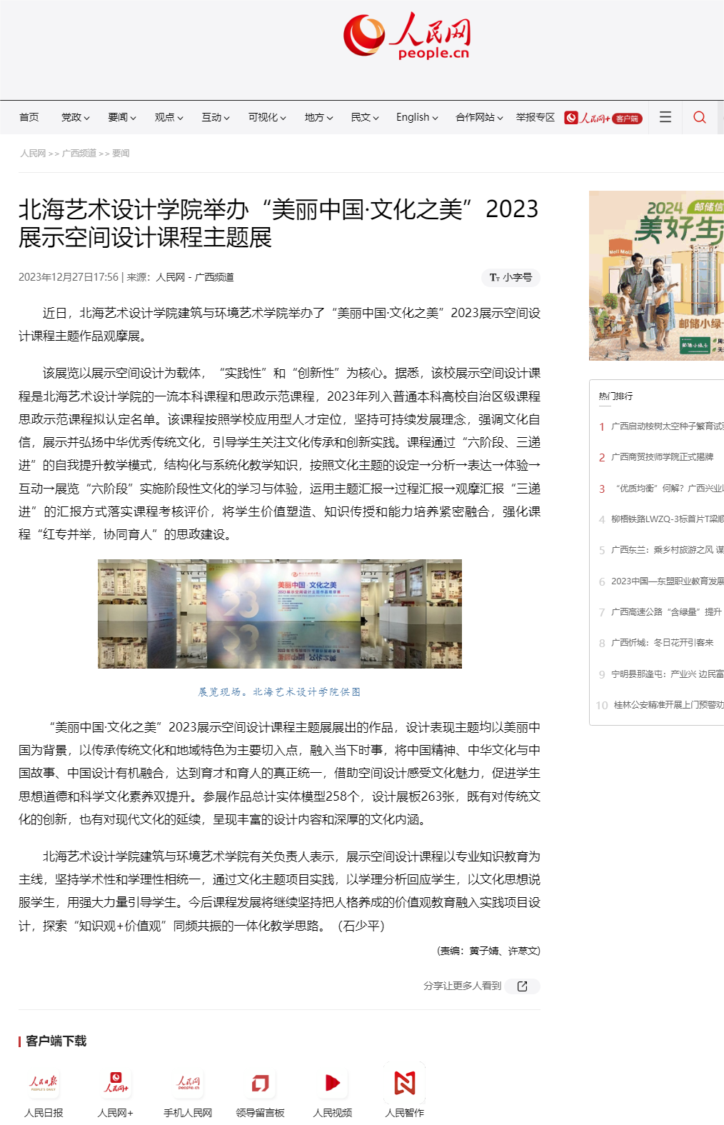 人民网:北海艺术设计学院举办“美丽中国·文化之美”2023展示空间设计课程主题展