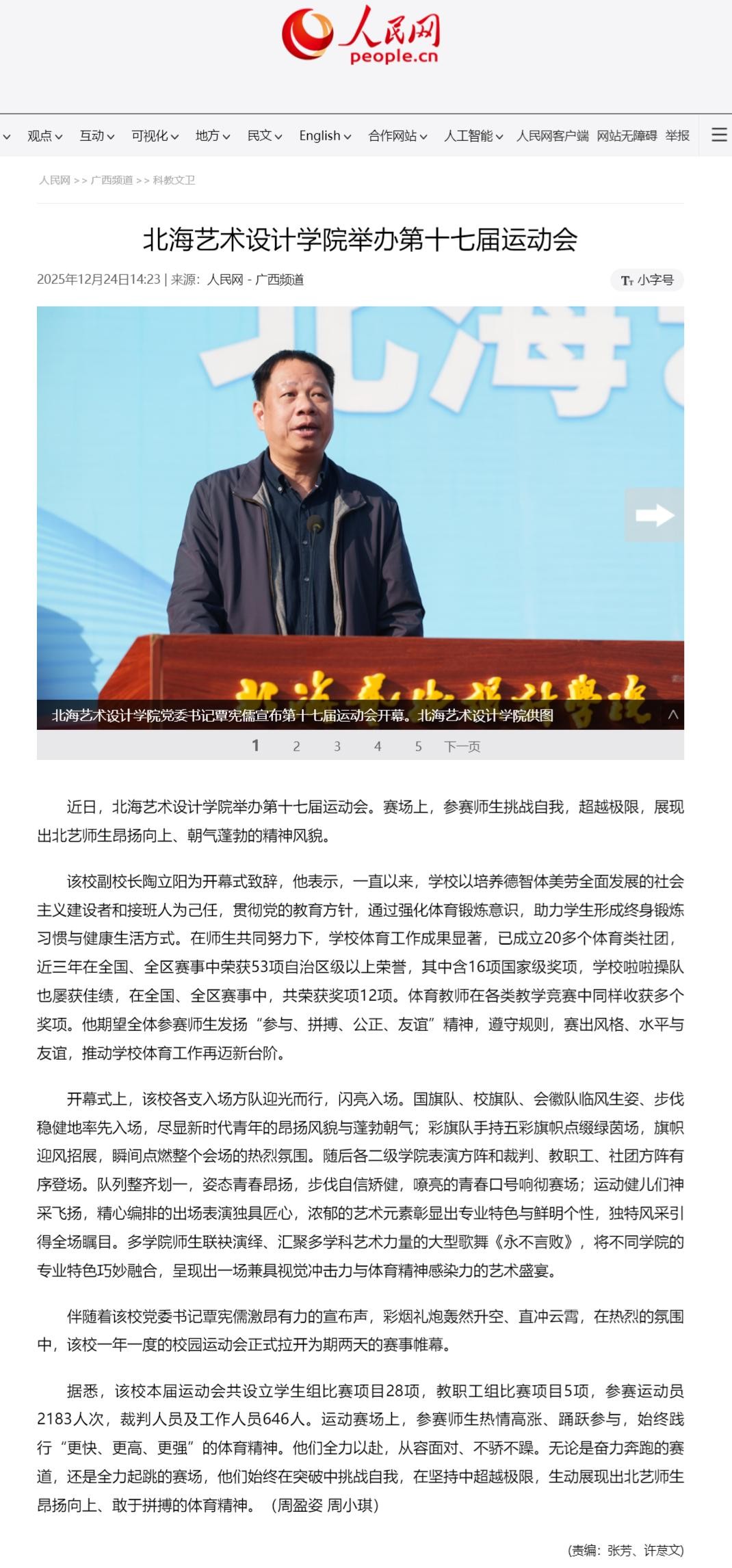 人民网:北海艺术设计学院举办第十七届运动会