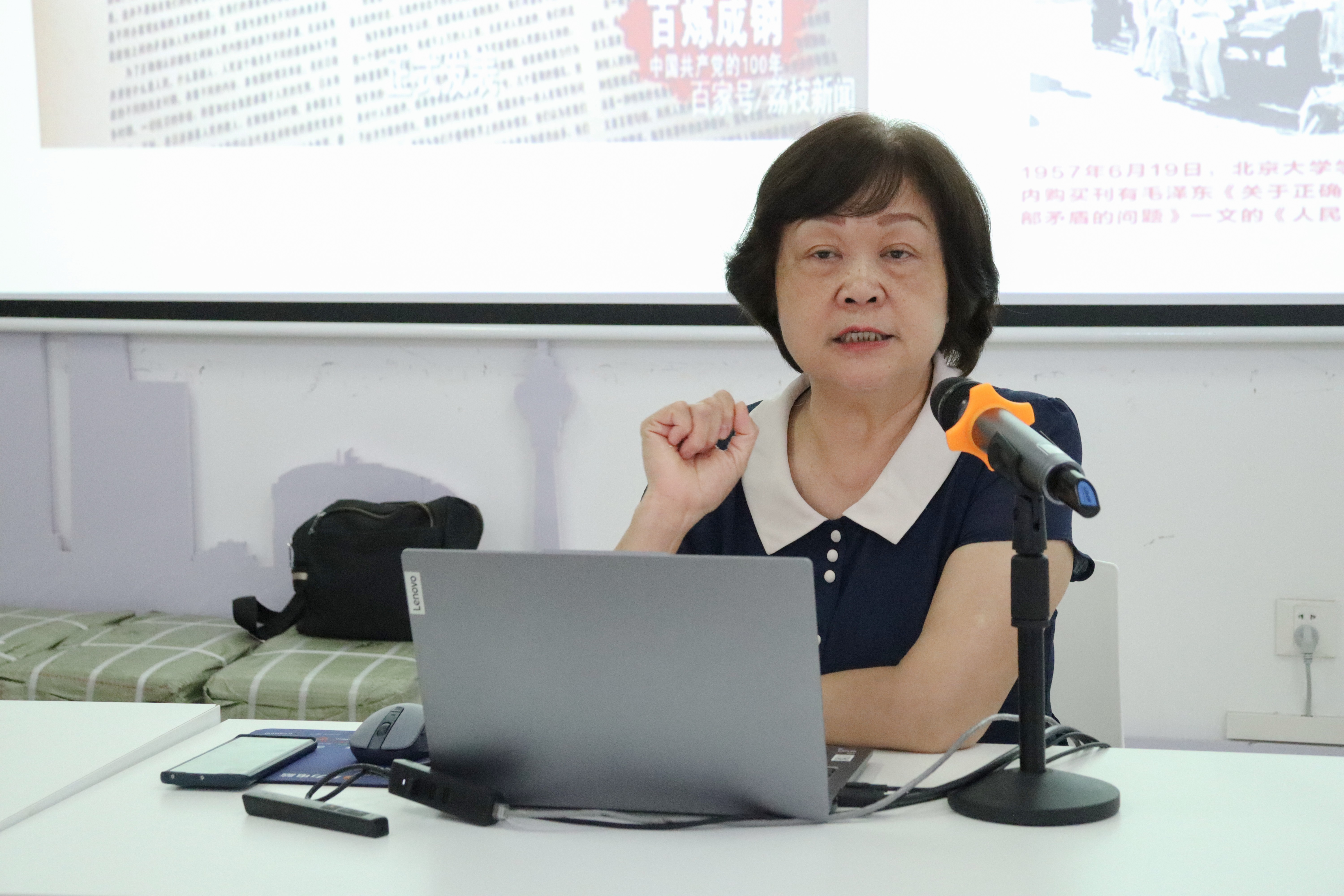 据了解,覃红教授结合自身的经历对经典历史事件进行了深刻幽默的讲解,有趣有深度,讲授现场激情澎湃,感染力极强,让人意犹未尽。