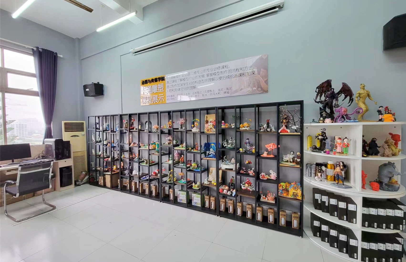 本实验室位于东校区综合楼409室,面积91平方米,分属动画专业实验室,主要承担动画专业相关课程中所涉及到的实践教学内容的实训任务。