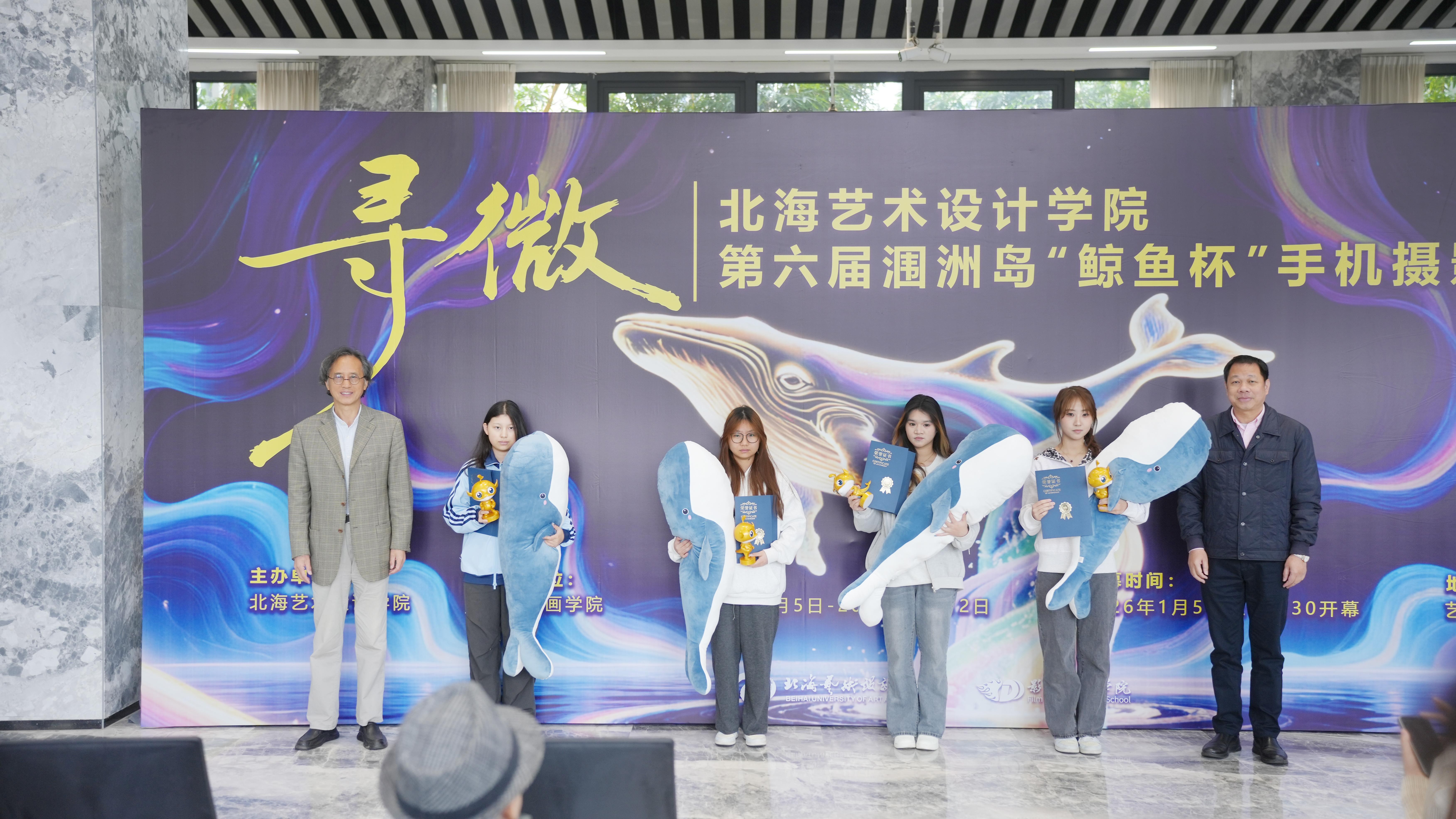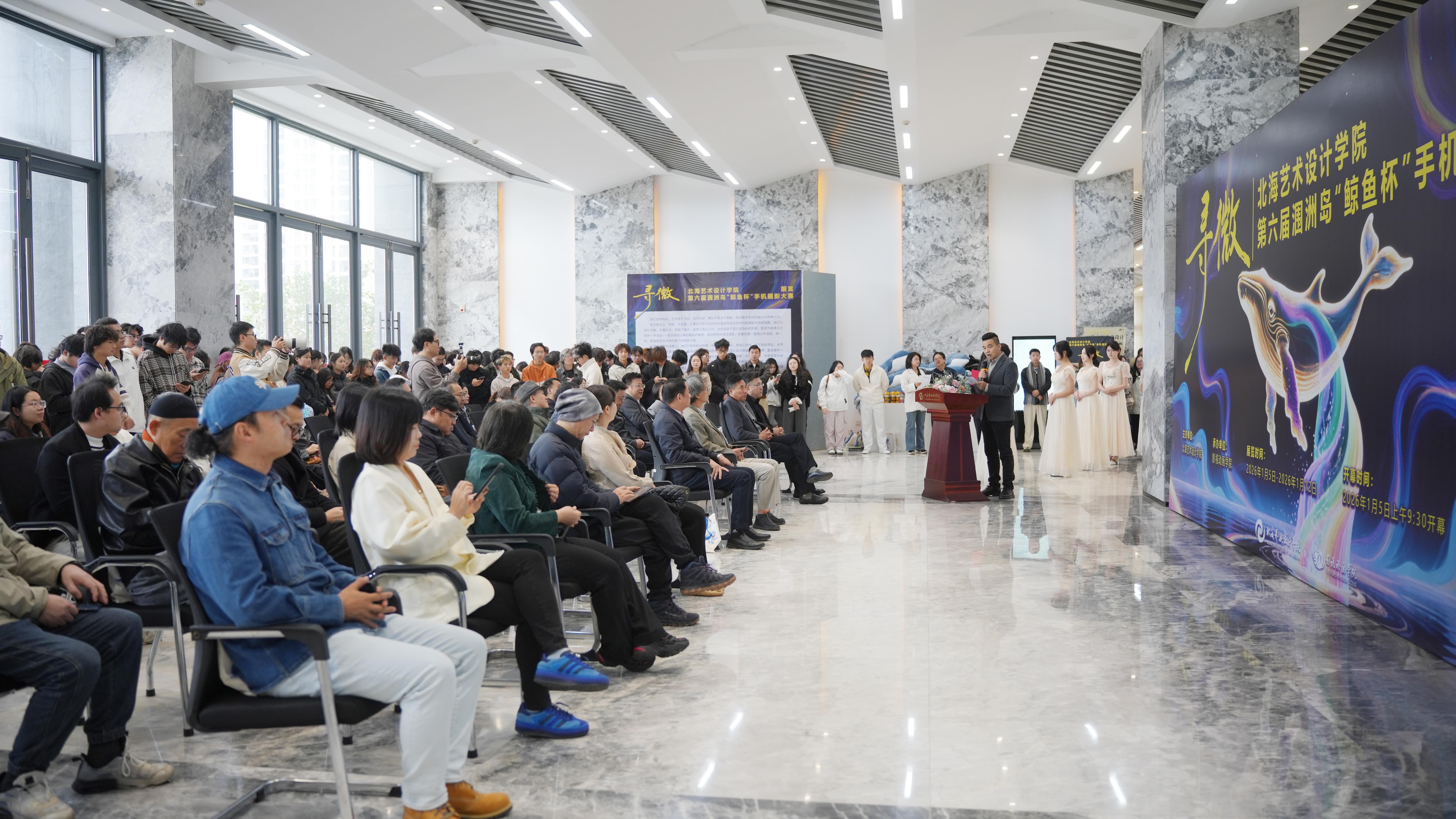 1月5日上午,第六届涠洲岛“鲸鱼杯”手机摄影大赛作品展开幕式暨颁奖仪式在艺德楼1楼举行。学校党委书记覃宪儒,校长卢新华,副校长陶立阳、邱杰、包建明、何煜等校领导出席活动。中国传媒大学赵晖教授、广州美术学院陈赞蔚教授、北京联合大学陈世红教授、北京电影学院孙平教授、吉林动画学院葛莹莹教授、青海师范大学袁志祥教授、广西艺术学院陈雷教授、南宁师范大学刘晓东教授,以及北海华彩文化传媒有限公司总经理陈丛越、北海市融媒体中心主持人李超等高校与行业嘉宾莅临指导。学校各二级学院负责人、专业带头人及师生代表共同参与开幕式。活动由影视动画学院院长助理邱红叶主持。