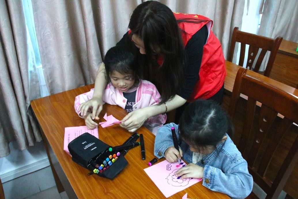 手工课堂上,志愿者引领孩子们踏上一场艺术探索之旅。孩子们在彩泥的塑形中学会色彩与形态的创新搭配;在折纸折叠与树叶拼贴中感悟自然的奇妙与魅力;在垃圾分类箱制作中学会垃圾分类知识。志愿者鼓励小朋友大胆尝试,用双手创造属于自己的艺术作品。别开生面的手工课堂不仅展现了小朋友们的才华和创意,还传递了绿色环保的理念。