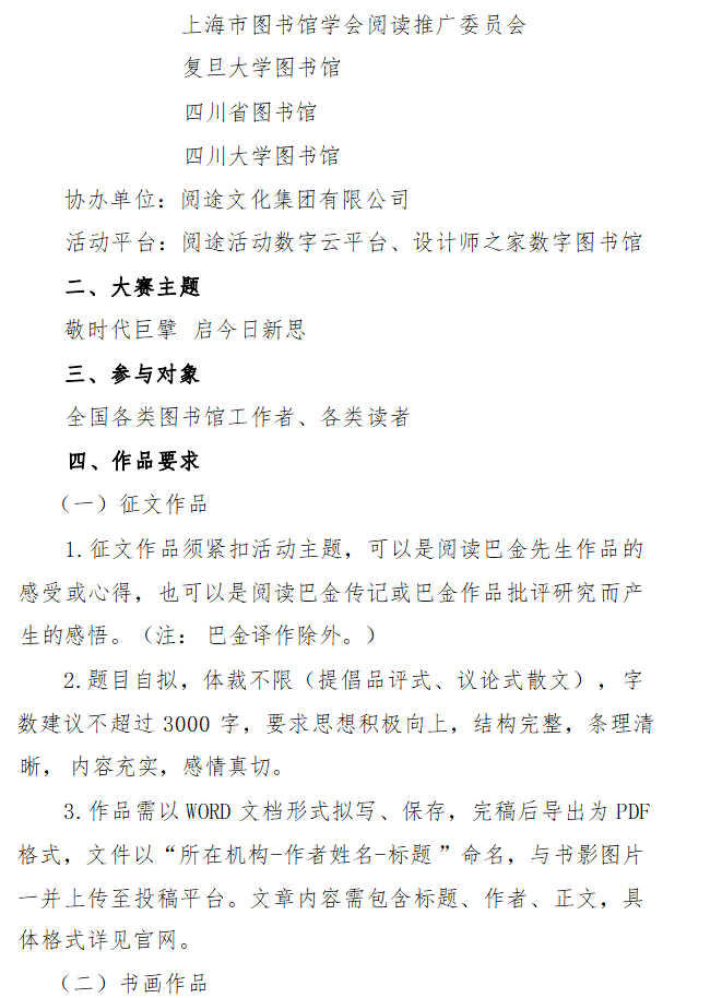 附件:关于开展“品读巴金”阅读创作大赛的通知