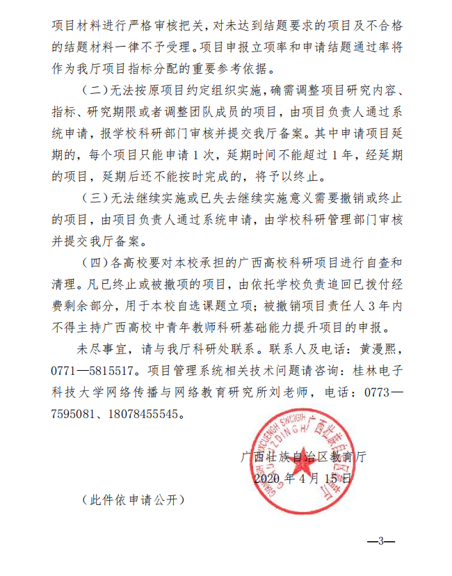 自治区教育厅关于做好2020年度广西高校中青年 教师科研基础能力提升项目结题工作的通知