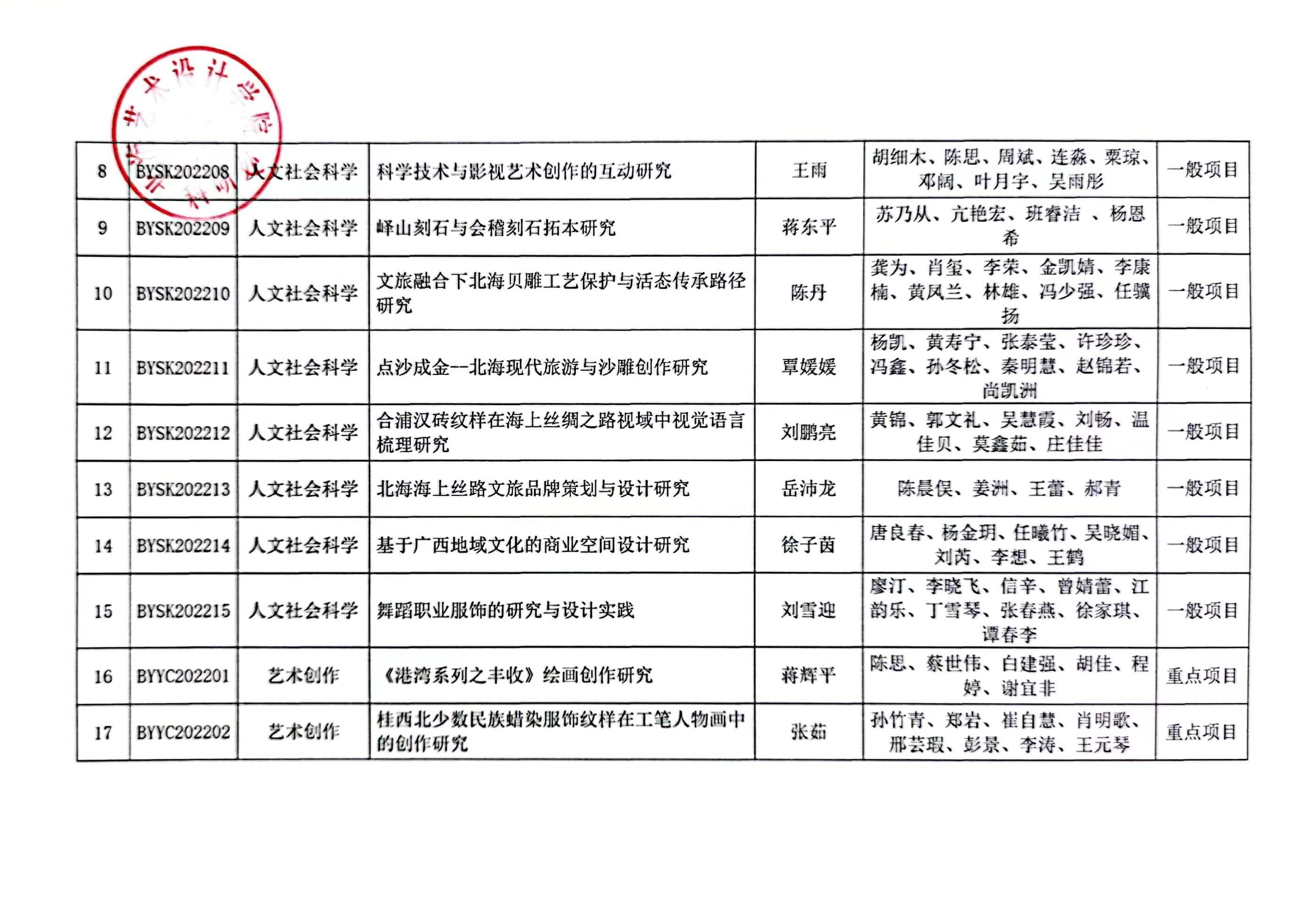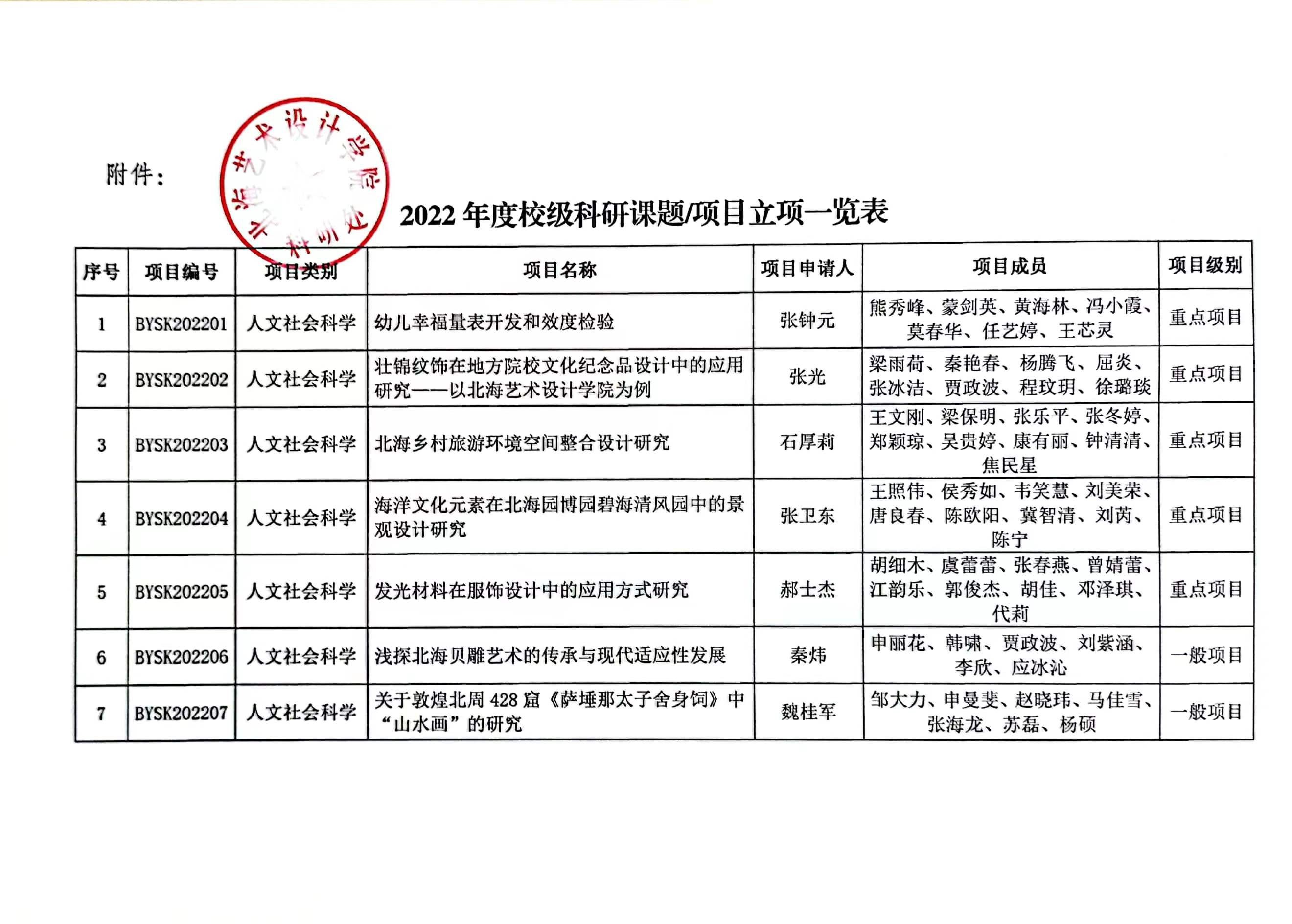 2022年度校级科研项目主持人与项目成员表