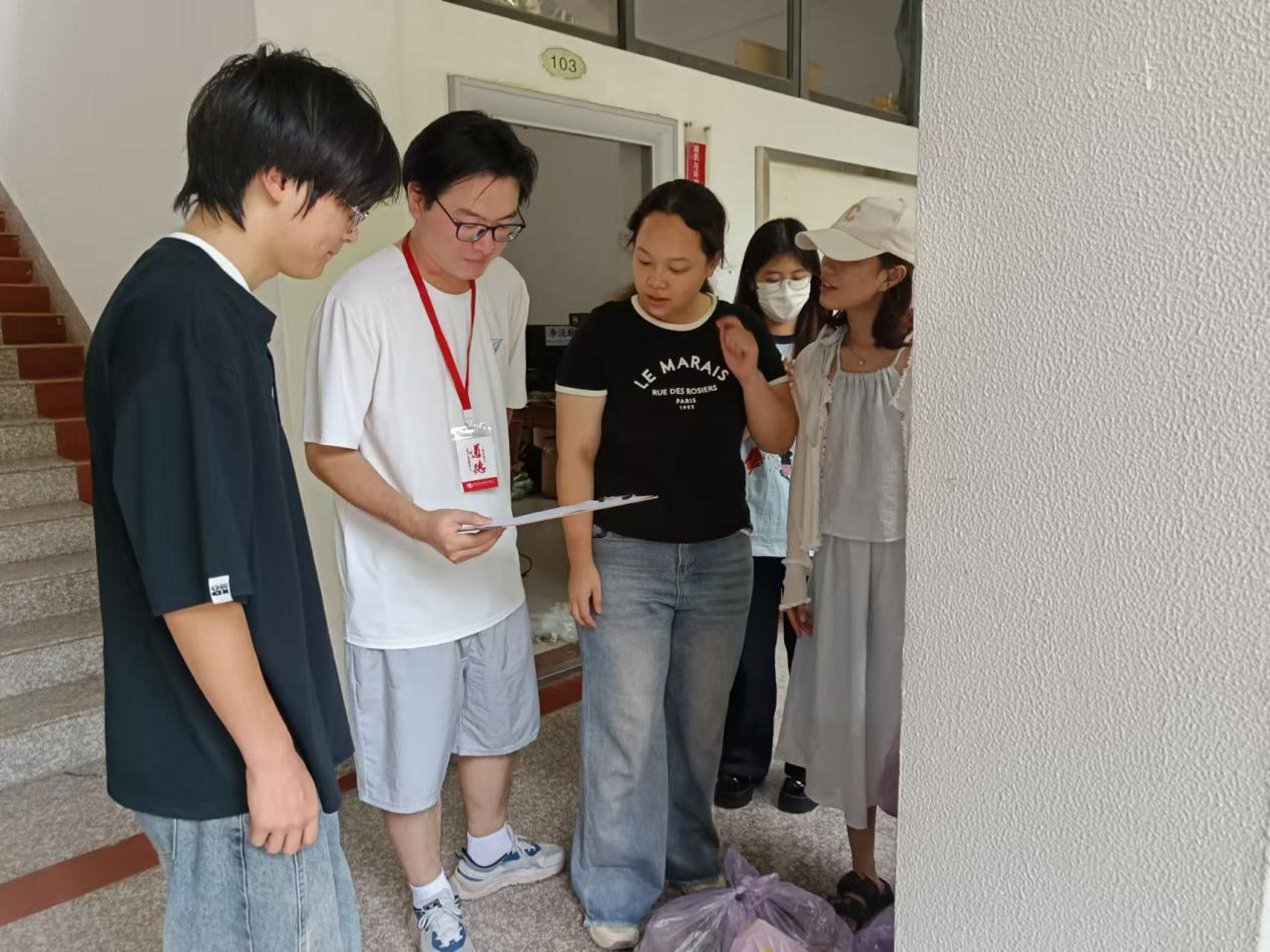 活动当日,文学院学工办许清、梁靖老师提前完成物资清点、场地布置等筹备工作。各班级学生代表按照既定流程,有序完成登记、核验、签领等环节,现场秩序井然有序,洋溢着温馨热烈的氛围。