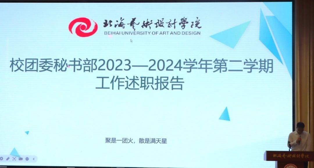 校团委各学生组织分别上台发言,从部门基本工作、存在的问题以及新学期的展望等方面进行汇报。他们发现工作中的不足并积极寻找解决方法,展现出北艺学子积极进取、勇于革新的精神风貌。相信经过此次会议,各学生组织定能补齐短板,更好发挥自身优势,为学校建设贡献自己的力量。