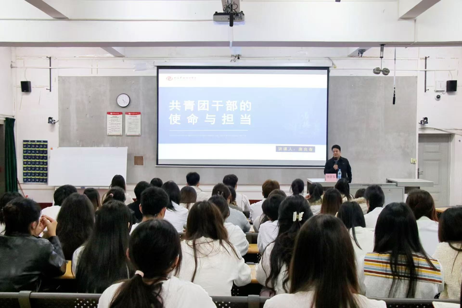 开班仪式后的系列专题授课干货满满。校团委书记唐良春从坚定理想信念、凝聚青年力量、提升工作能力三方面展开授课,勉励青年学子学团史、站稳政治立场,争做德才兼备的时代新人。