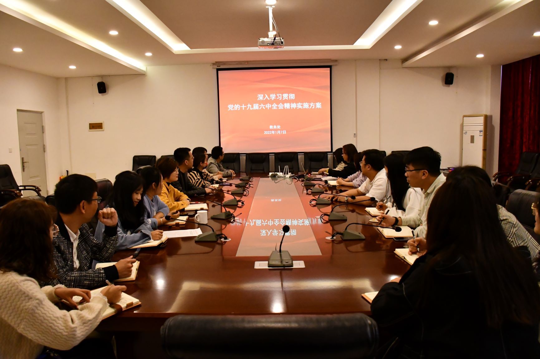 为深入学习宣传贯彻党的十九届六中全会精神,教务处于2022年1月7日上午在行政楼212会议室召开了学习会议。会议由吕雅婷副处长主持。