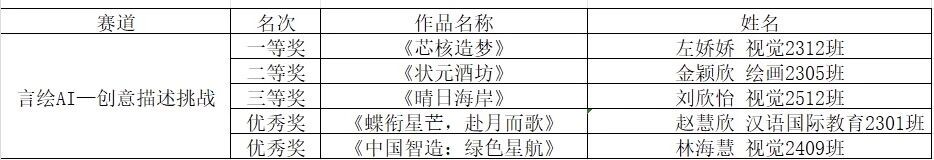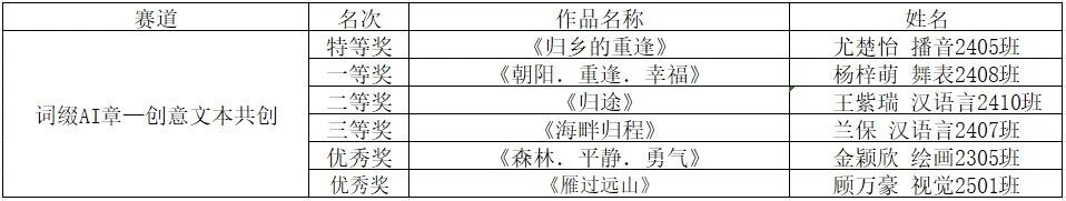 每一份参赛作品,都是学子们艺术素养与AI技术应用能力的集中体现;每一票的认可,都承载着对创新精神的推崇与鼓励。大赛秉承公平、公正的原则,现将最终评选出的各类奖项名单公示如下