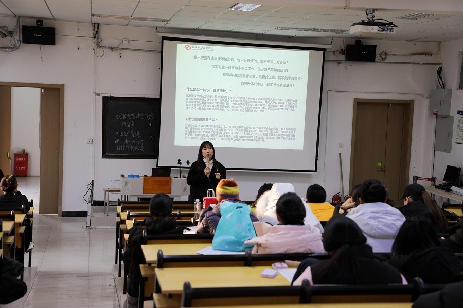 康伟老师围绕实习与就业核心安排展开详细讲解。她结合舞蹈行业发展趋势,系统介绍了实习就业的多元领域,涵盖舞蹈编排、演出策划、艺术教学辅导等多个方向,引导同学们结合自身兴趣特长与职业规划,精准选择实习单位。会上,发放实习就业指导资料,康伟老师细致解读了实习就业相关表格的填写规范,现场指导同学们梳理实习前准备要点,并全面推介了学院即将开展的各类实习就业资源与机会,并鼓励同学们主动出击、积极拓展岗位渠道,科学布局职业发展路径,在实习实践中积累经验、增长才干,为顺利就业积蓄力量,确保实习、就业工作有序推进。