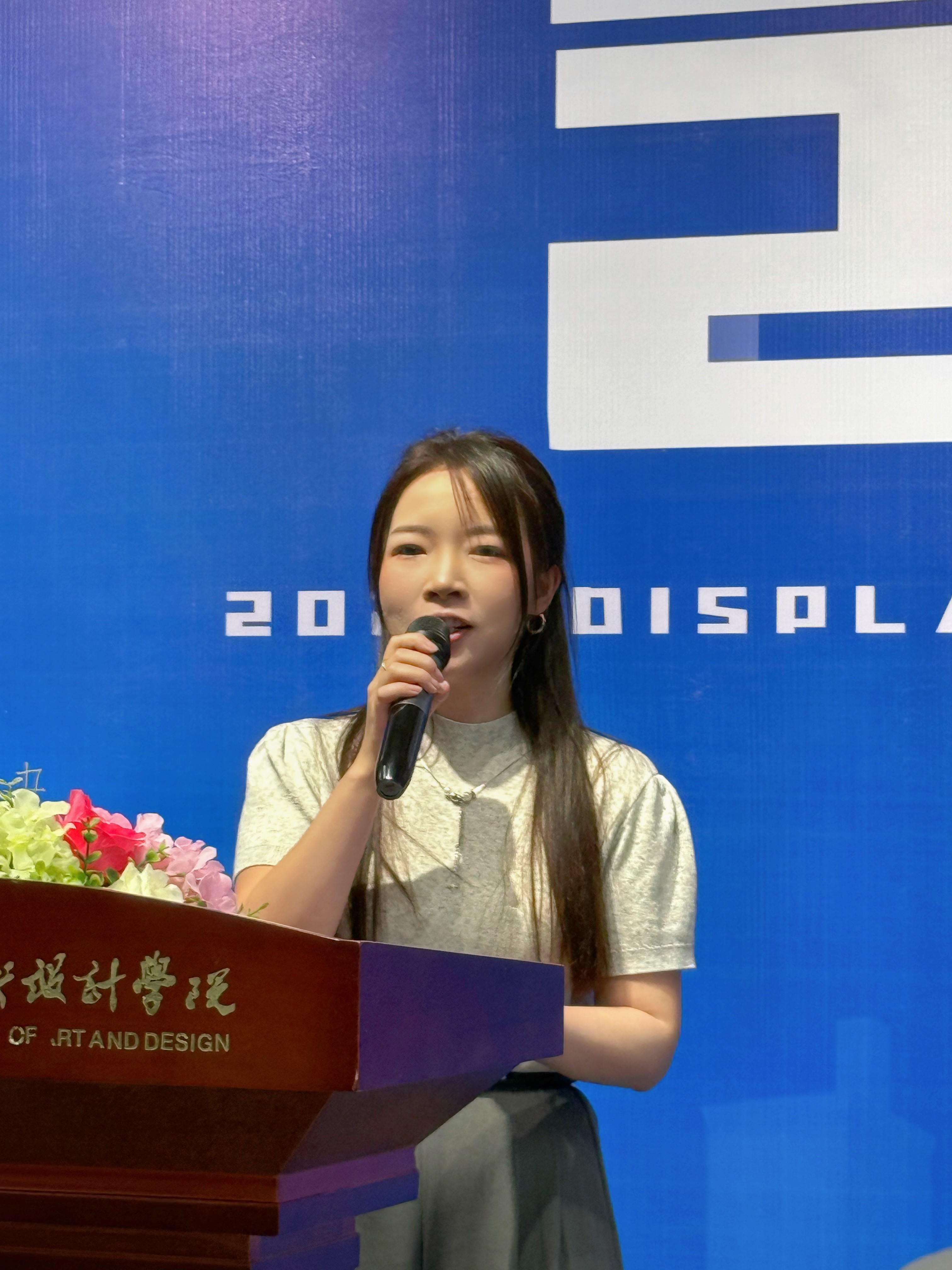 《陈设设计》课程负责人郑颖琼老师简要介绍了课程的相关信息。自开课以来,课程以“实践性、创新性”为核心,不断改革教学模式和内容,此次展览围绕节庆、品牌装置、家居、市集、视觉等多元主题全面铺展,深度聚焦极具魅力的主题橱窗美陈设计领域。同时课程积极顺应时代潮流,大力鼓励学生巧妙运用前沿的AI技术,打破传统设计思维的桎梏,不仅促进学生思想道德和科学文化的素养发展,也为观众呈现多元化的设计理念与创意成果,推动陈设设计领域的创新与发展。
