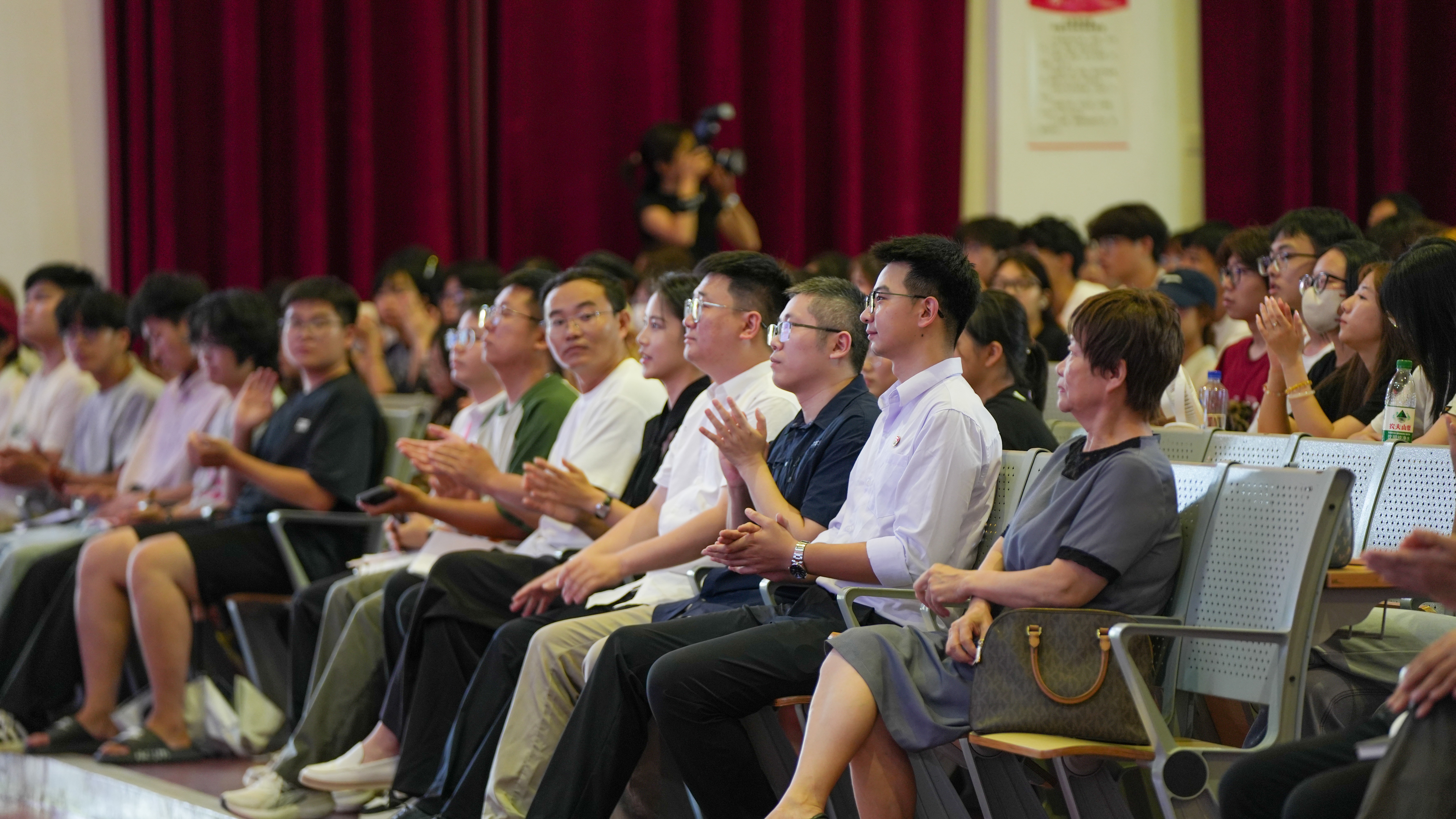 为进一步加深2025级新生对专业的全面认识,帮助新生明晰专业定位、规划学习路径,以最佳状态开启大学求学新征程、为四年学业奠定坚实基础,9月11日,传媒艺术学院在西校区大礼堂举行2025级新生入学教育及专业介绍会。北海艺术设计学院特聘教授高亮,传媒艺术学院党总支书记王明森,院长杜博,党总支副书记杨若飞,副院长杨红夷、李高昱昊、张海峰,学工办主任田多元,综合办主任张斯洵,教务办主任张纹豪,数字媒体艺术专业教研室主任徐相坤,播音与主持艺术专业教研室主任熊彪,传媒艺术学院各部门负责人、专业教师,新生辅导员及全体新生共同参加。