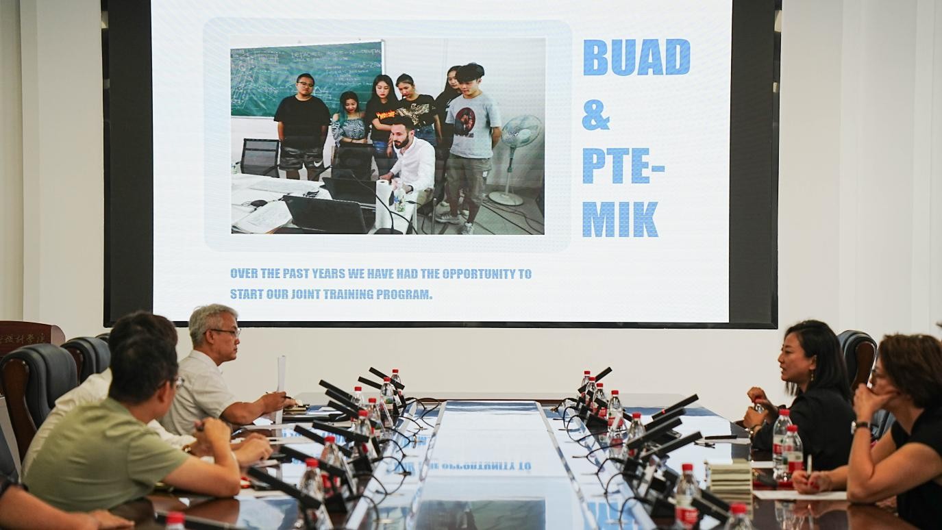 为深化建筑与环境设计领域国际学术交流,推动院校间合作向纵深发展,培育具备国际视野的专业人才,2025年10月12日上午10:30,由我院举办的“聚力名师・共创未来”——建筑与环境设计学术论坛在北海艺术设计学院南校区艺德楼八楼会议室顺利举行。佩奇大学工程与信息技术学院阿科斯·胡特尔教授、埃里卡·沃罗斯副教授、金鑫副教授,北海艺术设计学院董事长郑念贻,建筑与环境艺术学院党总支书记庞定坤、院长张春东、副书记曲玥、副院长蔡世伟、张乐平及学院师生代表共同参会,围绕学科发展、国际合作等议题展开深度交流。本次论坛由建筑与环境艺术学院副院长蔡世伟主持。