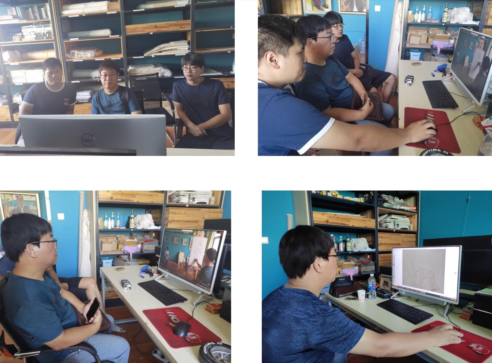 9月22日-9月23日,石教授在绘画教研室老师的陪同下,给19级油画方向的同学在网络上播放录制的作画视频,并展开全程讲解。(张湘中 摄)