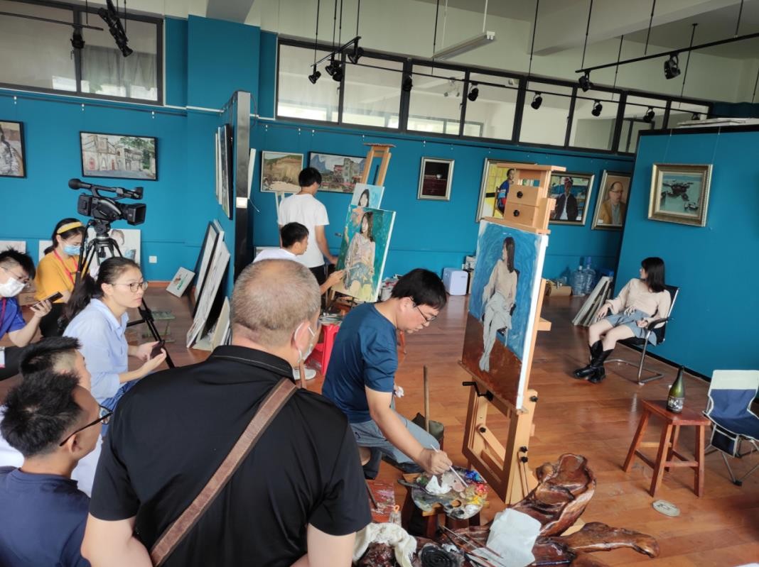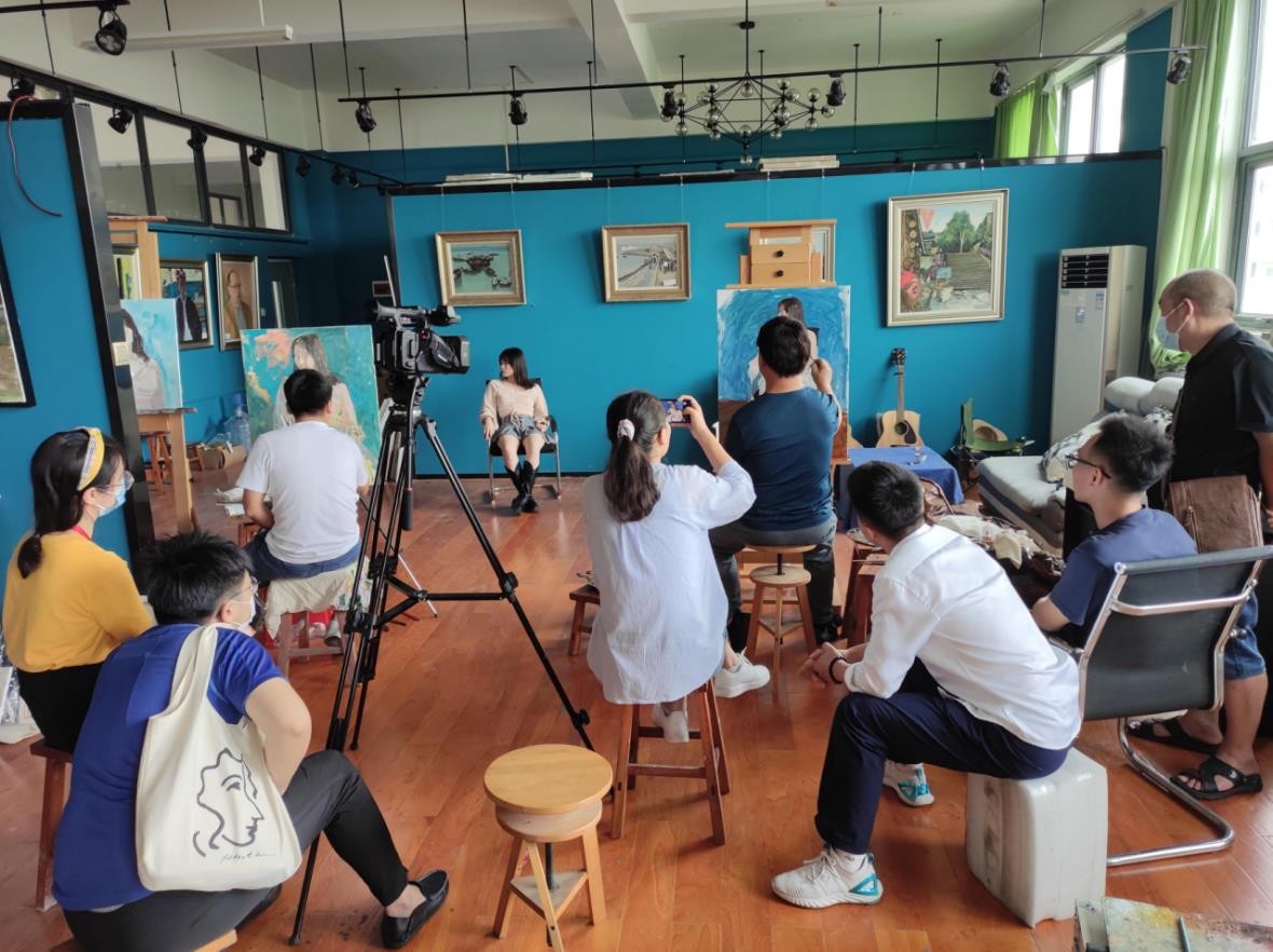 9月17日,绘画教研室联合摄影专业老师在绘画工作室为石强教授录制《油画全身像写生》课程的教学视频。