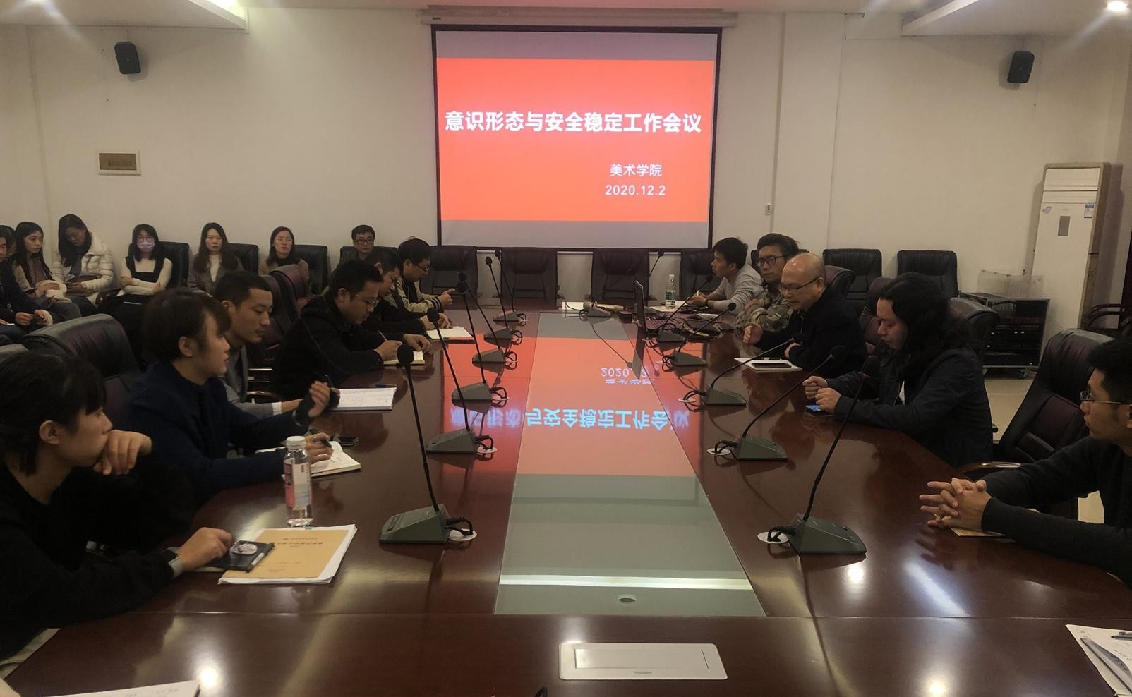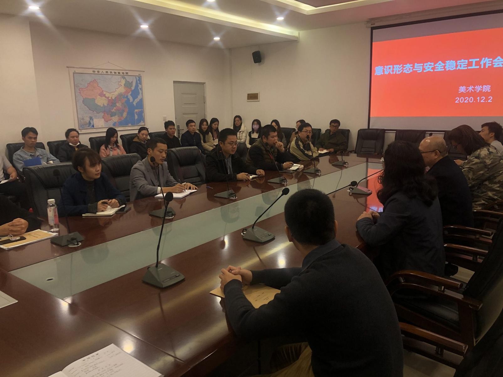 2020年12月2日,我院意识形态与安全稳定工作会议在行政楼212召开,校党委书记李高南、副校长胡胜、美术学院全体教职工参加会议,会议由常务副院长龚为主持。
