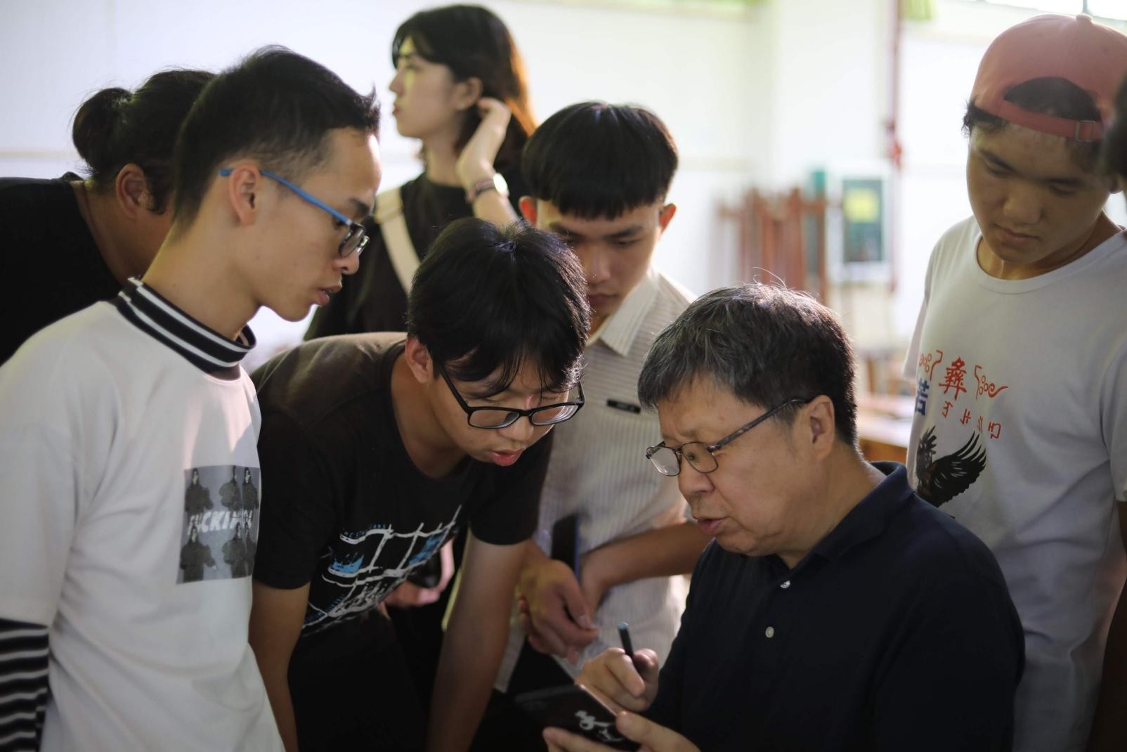 在这欢快愉悦的气氛中,计宇教授的范画也告一段落了,本次教学活动在热烈的掌声中圆满结束。(陈建江 摄)