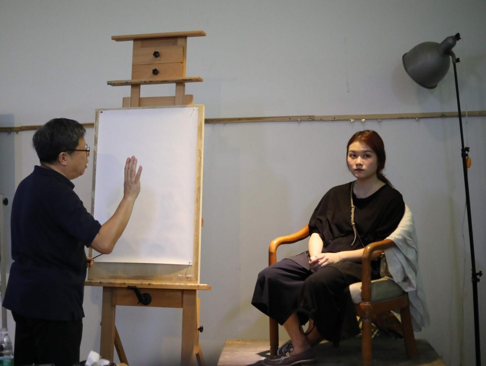2019年6月4日上午八点,来自美国加利福利亚长滩州立大学的计宇教授莅临美术学院图书馆教学区进行现场作画示范。副校长胡胜老师、副院长唐海老师、副院长龚为老师、教研室主任张湘中老师、教务室主任肖玺老师、学工办副主任袁志伟老师、程宣睿老师以及美术学院全体绘画专业同学等参加了此次的教学活动。