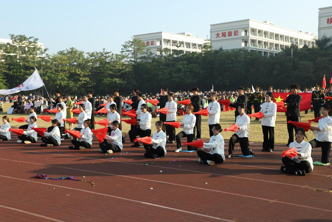 12月19日开幕式当天,文学院举牌同学步履坚定,引领运动员方阵踏着整齐的青春步伐走来,尽显文院健儿的飒爽英姿;紧随其后的表演方阵迅速成为赛场焦点,红色伞面翩跹舞动,剑影交错间气势如虹,刚柔并济、“文”“武”交融的特色表演赢得现场阵阵掌声。