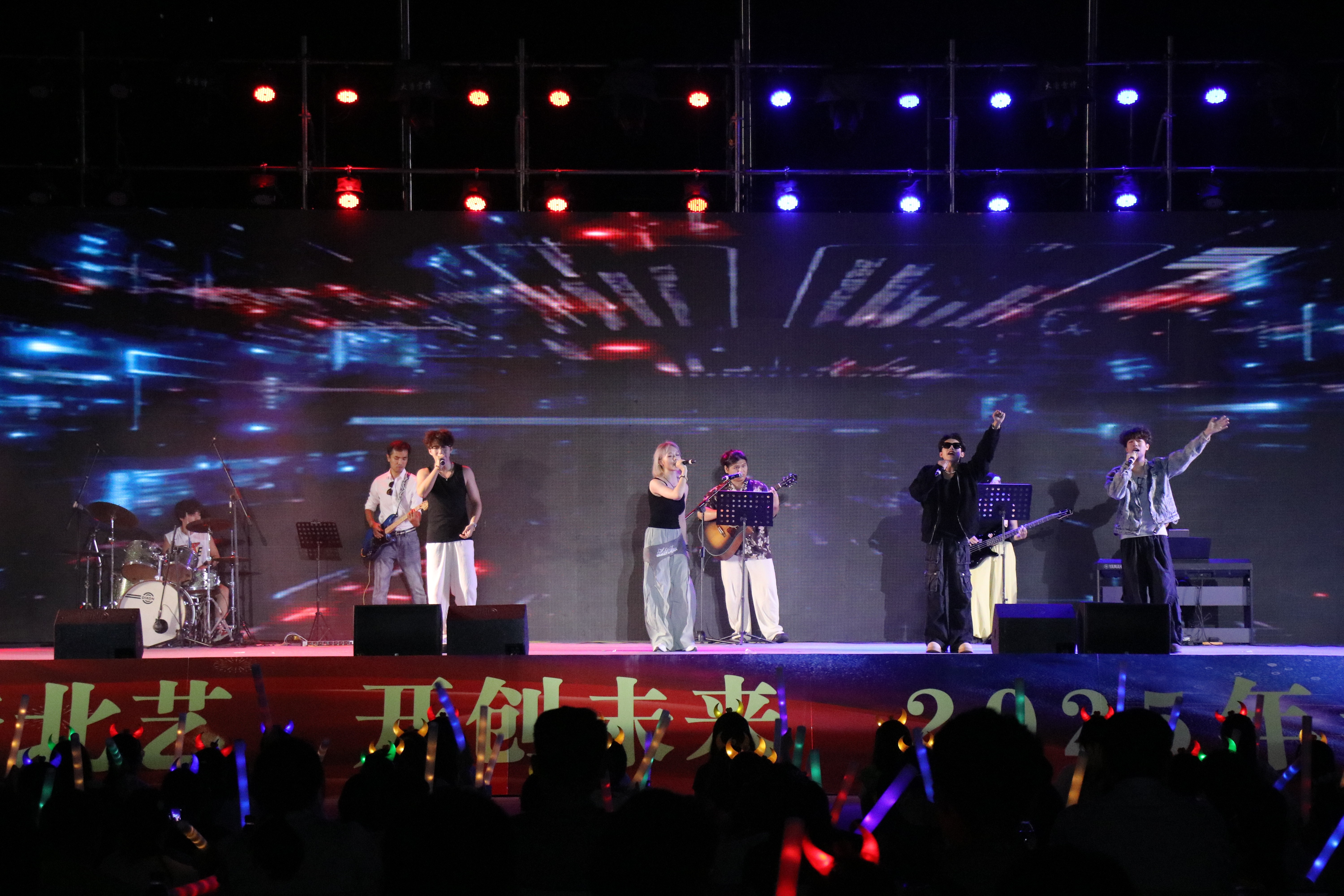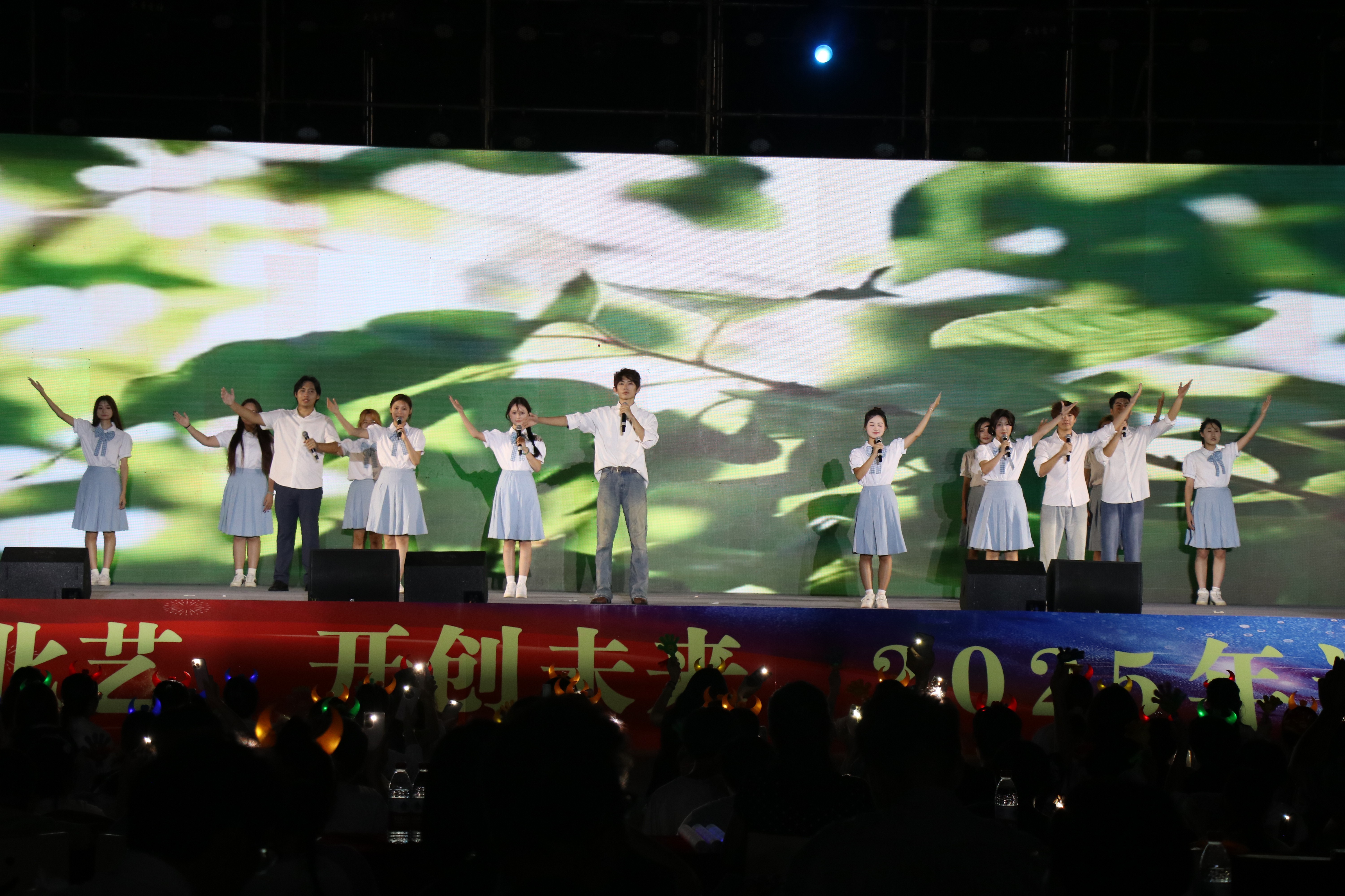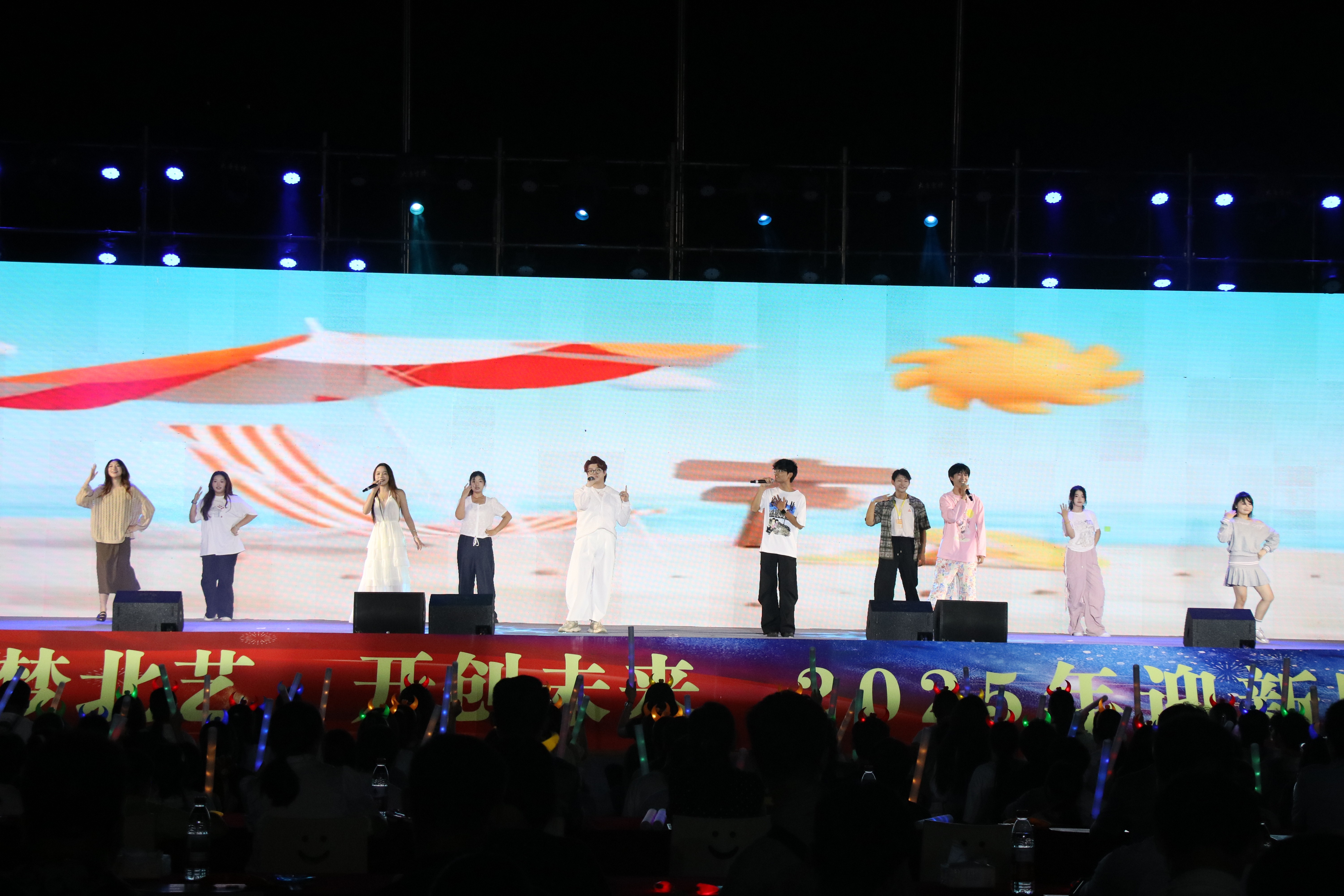 10 月 11 日,北海艺术设计学院 “圆梦北艺,开创未来”2025 年迎新晚会在西区操场举行。党委书记覃宪儒,党委副书记陈毅华、彭仁、刘承初,副校长何煜及各处室、二级学院负责人与师生共同观看演出。