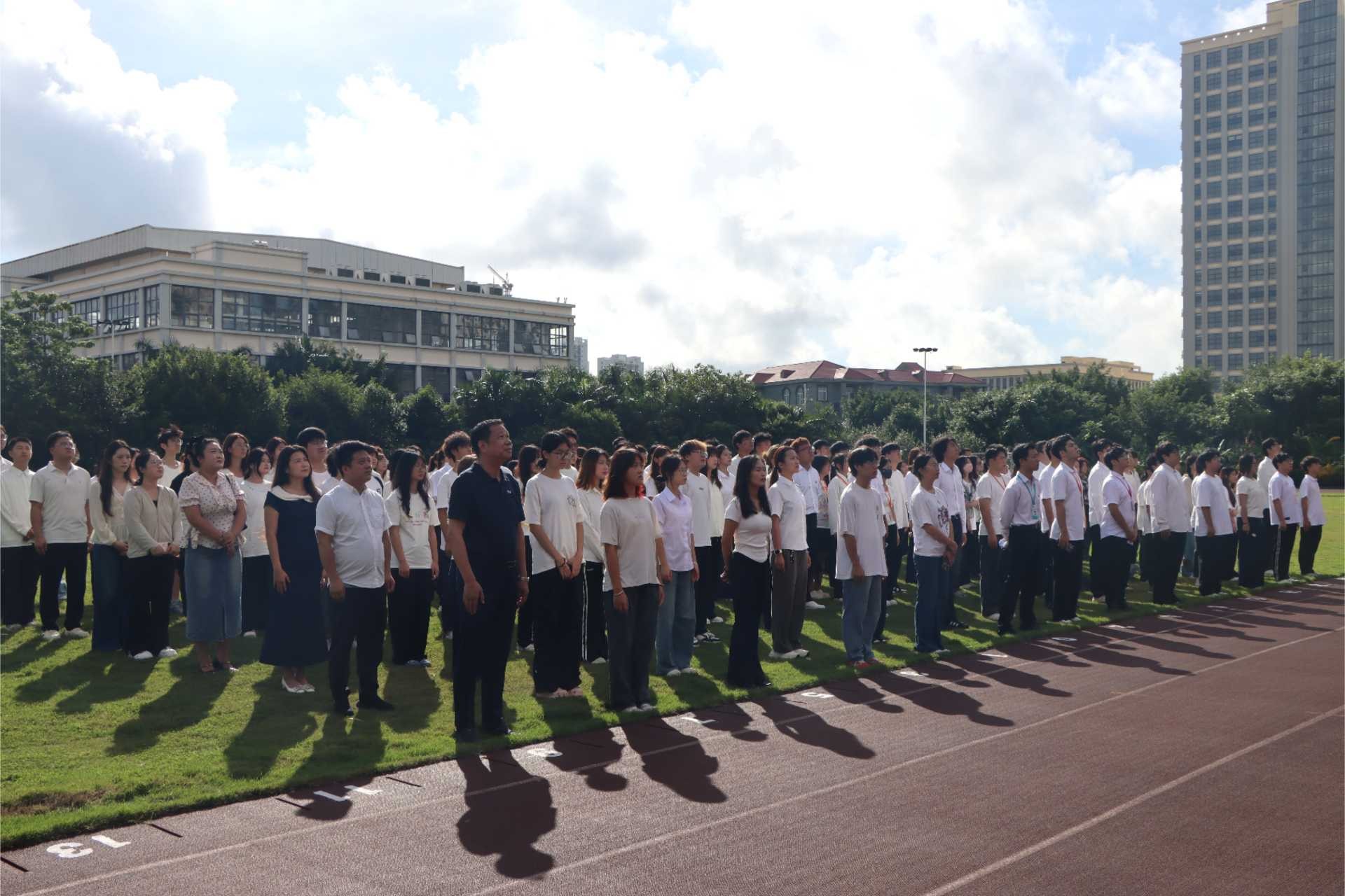 10月1日,为庆祝中华人民共和国成立 76 周年,大力弘扬爱国主义精神,我校在西区操场举行庄严的升旗仪式。