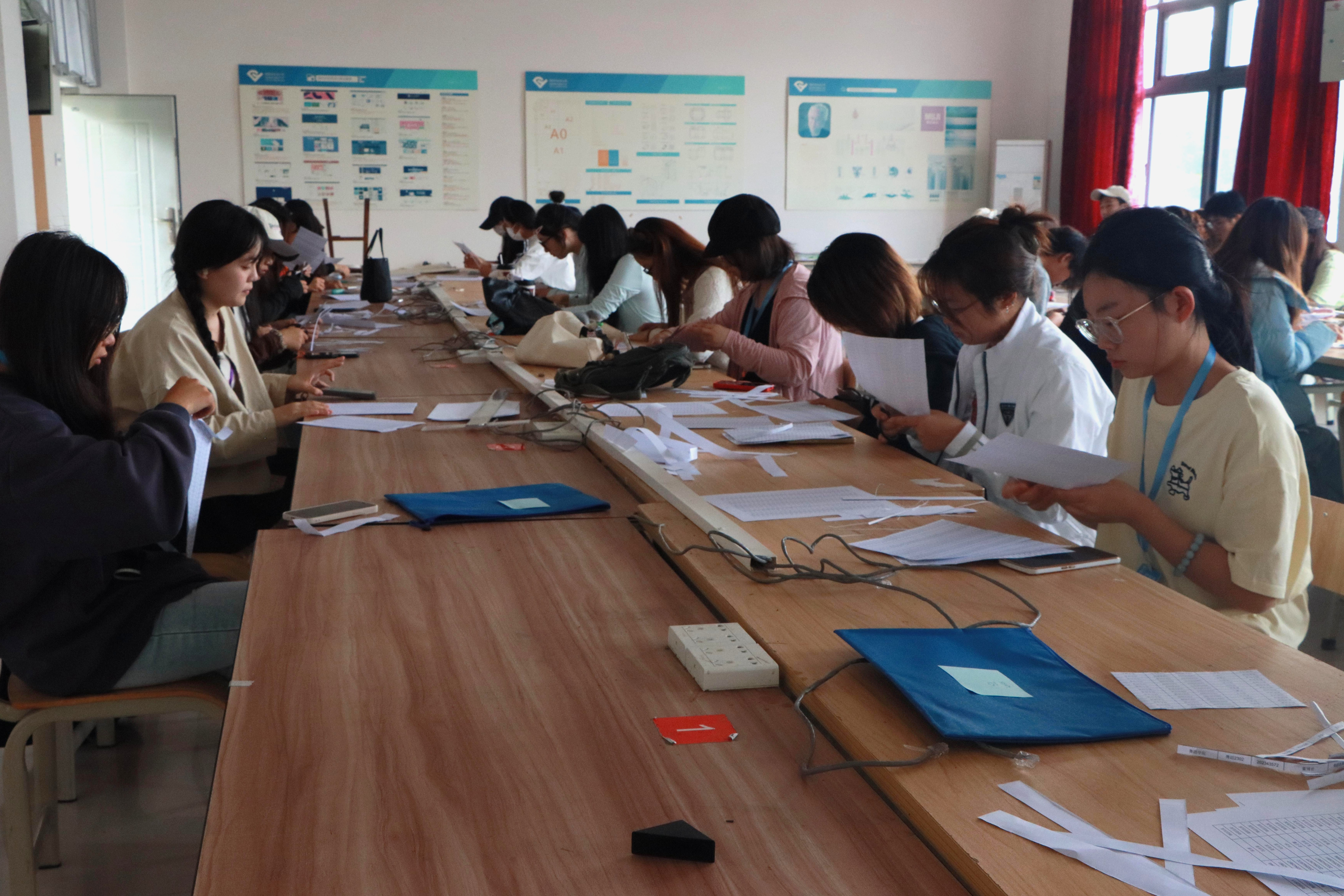 现场,每位同学都全神贯注,小心翼翼地裁剪着手中的信息条。